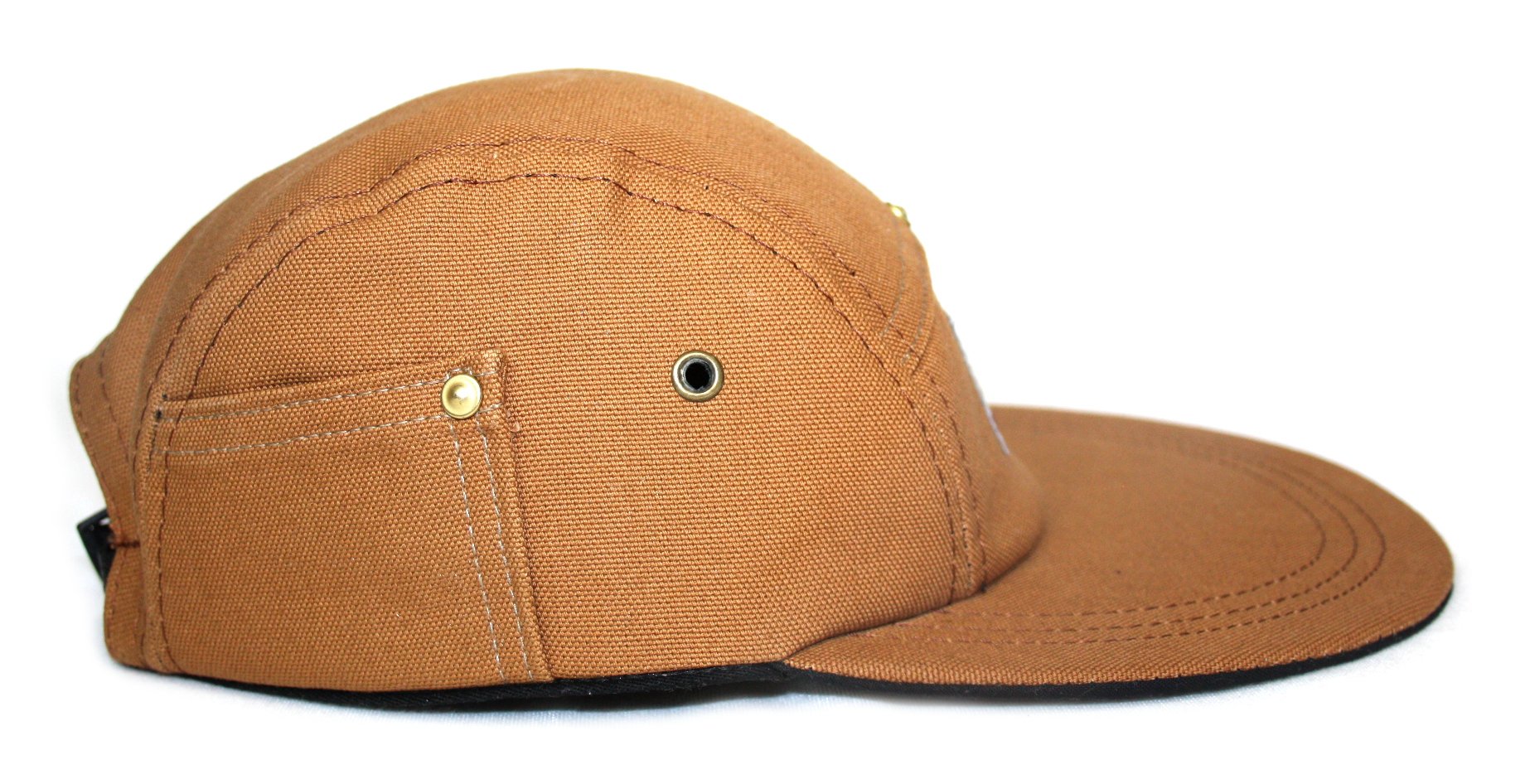 - Hat constructed from recycled Carhartt welder pants in the three panel design.