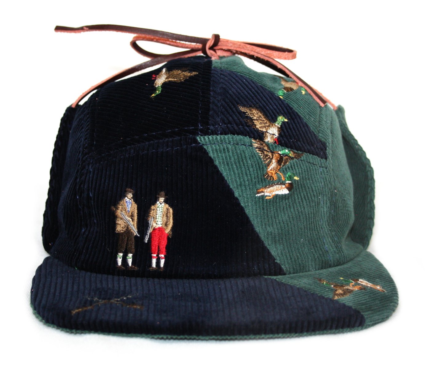 - Five panel hat reworked from damaged Polo corduroy shorts in the split design.