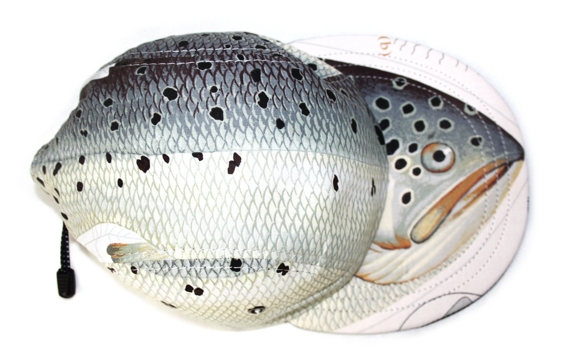 - 3-Panel cap made from fish pillow kit fabric.