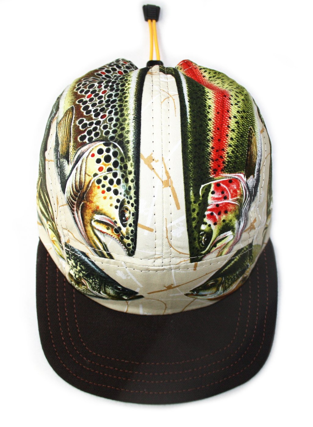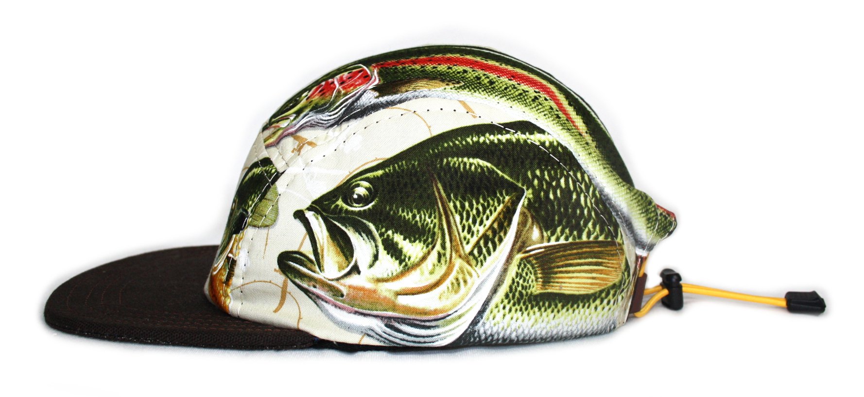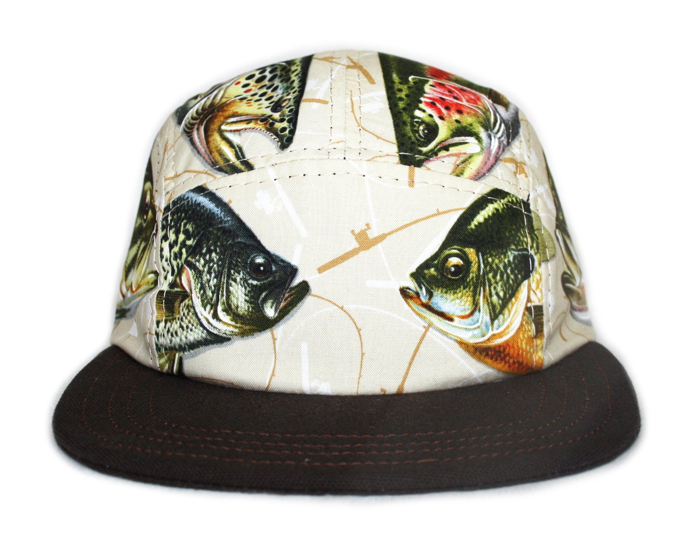 - Three panel hat constructed from fish theme fabric and duck canvas.