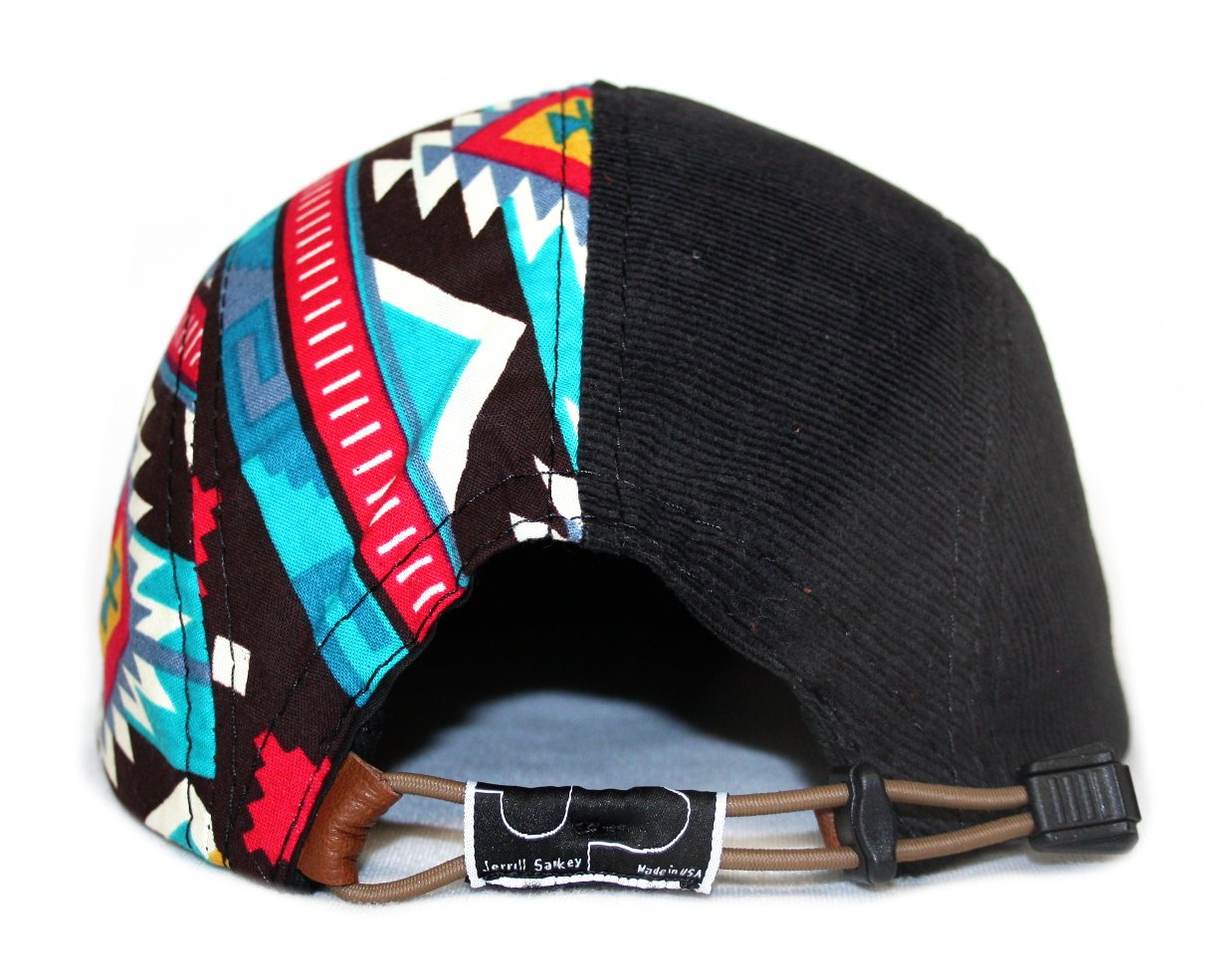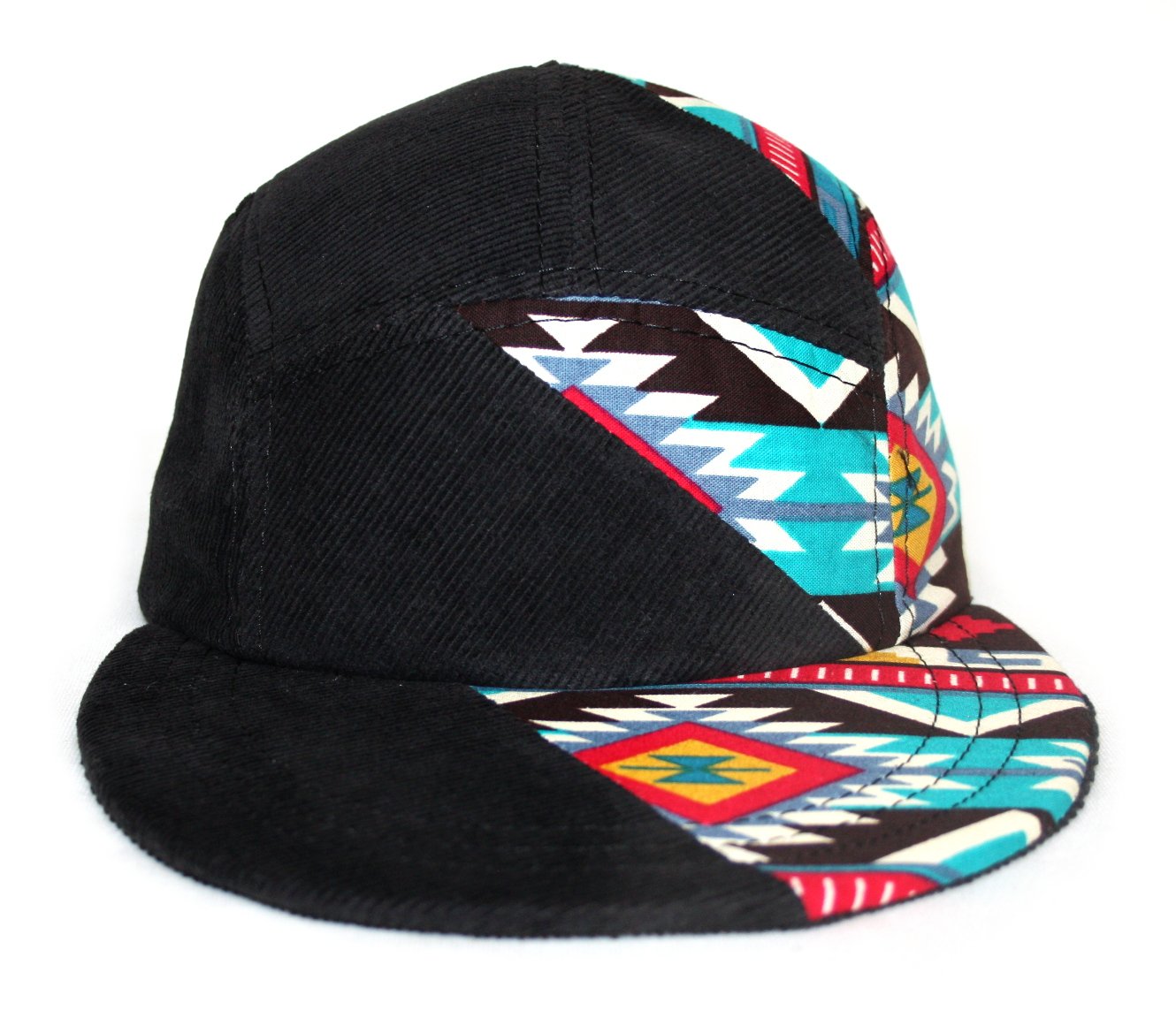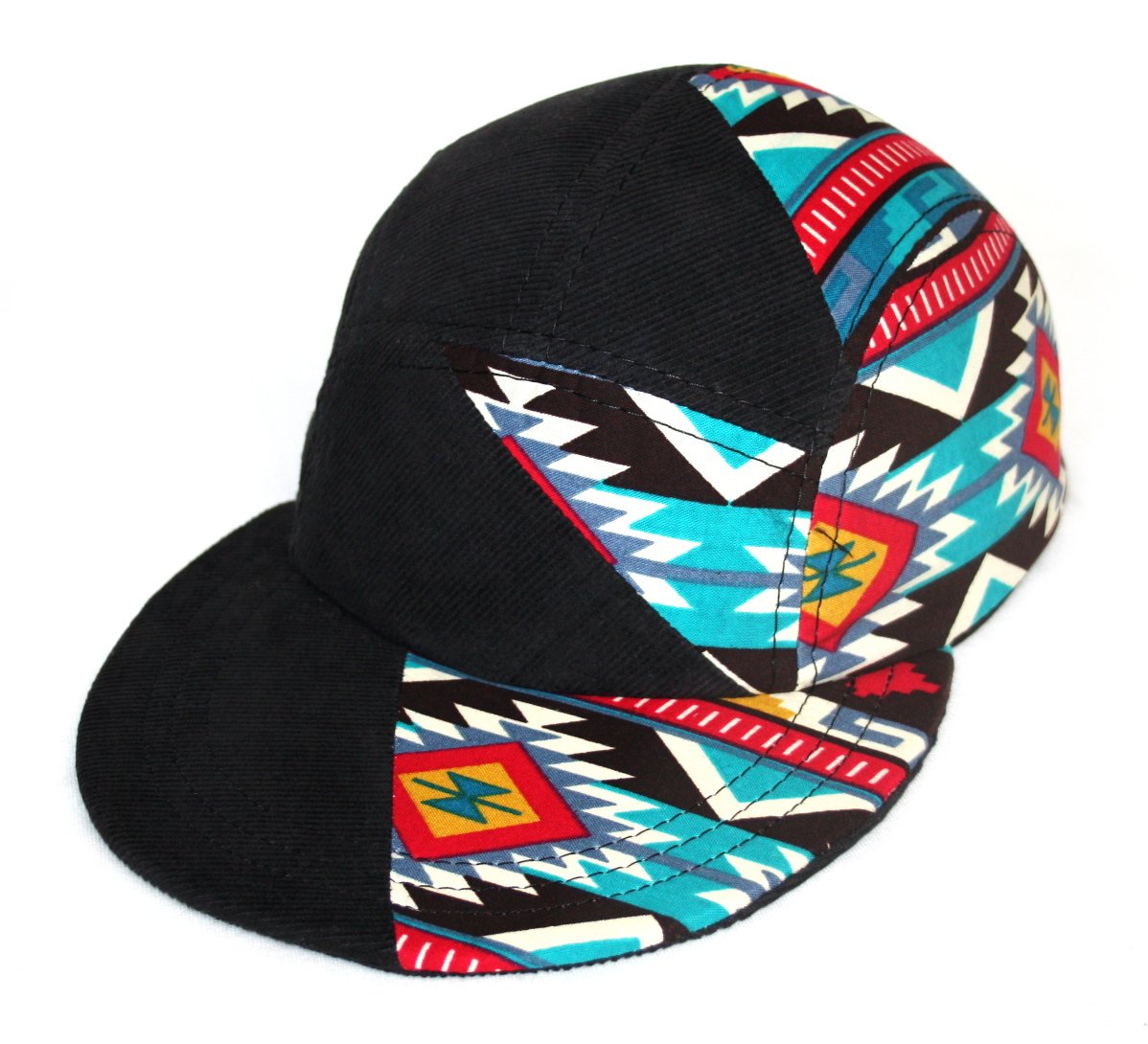 - This hat is made from corduroy and Aztec print fabric in the split design.