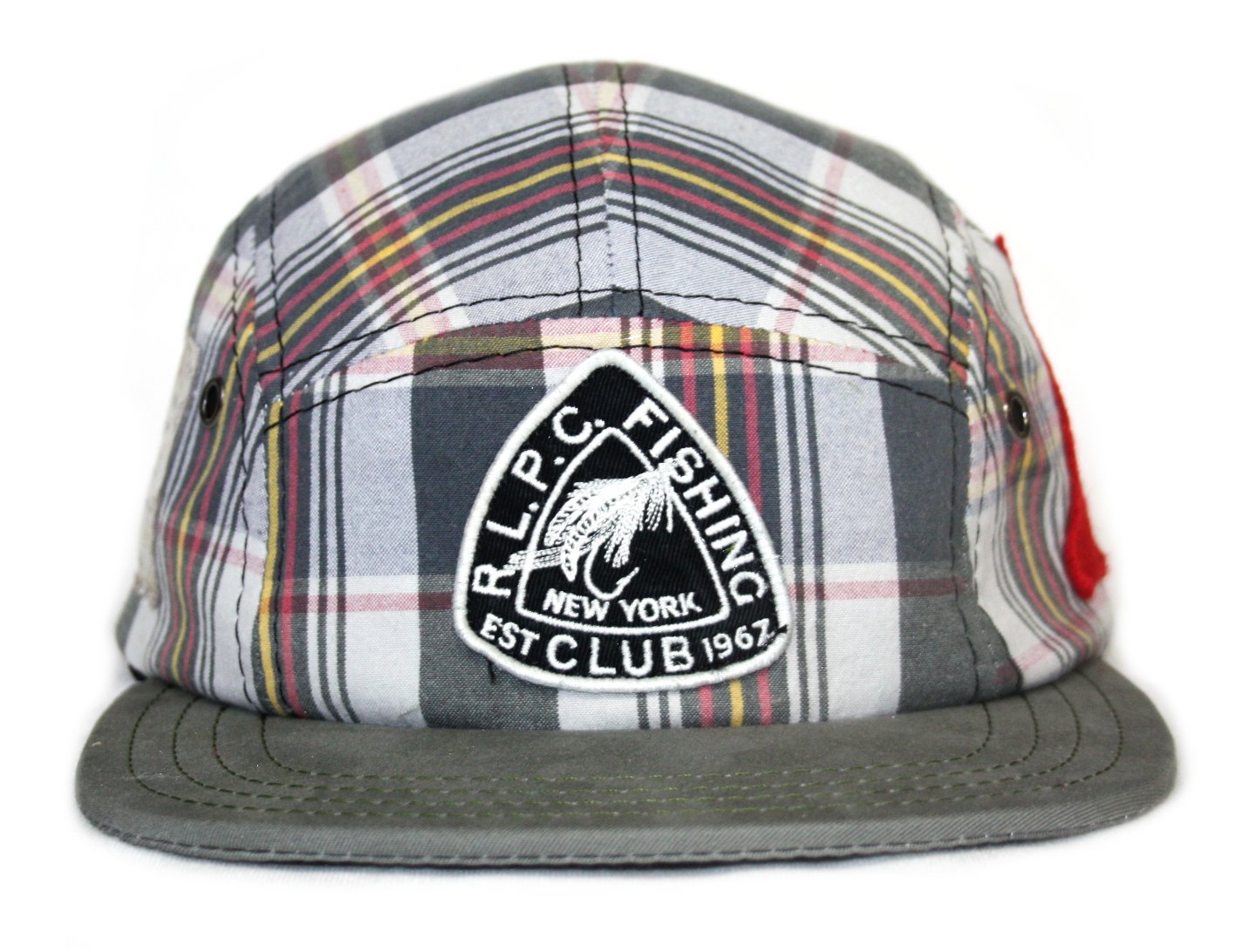 - Hat made from recycled vintage Polo fishing swim shorts.