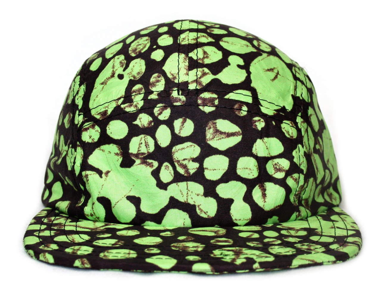 - Five panel hat made from printed waz cotton printed fabric.