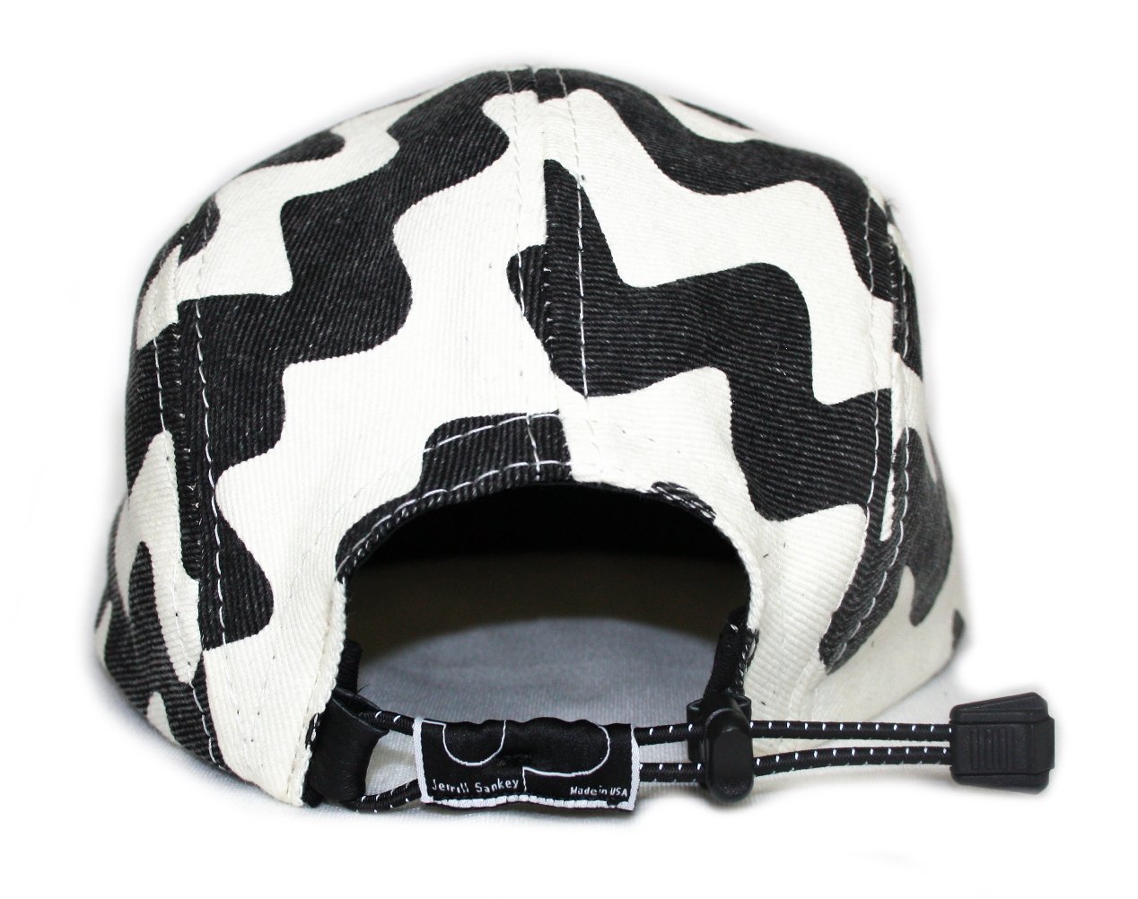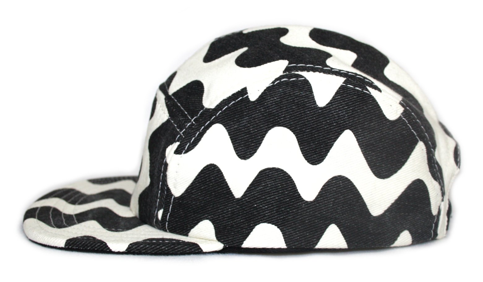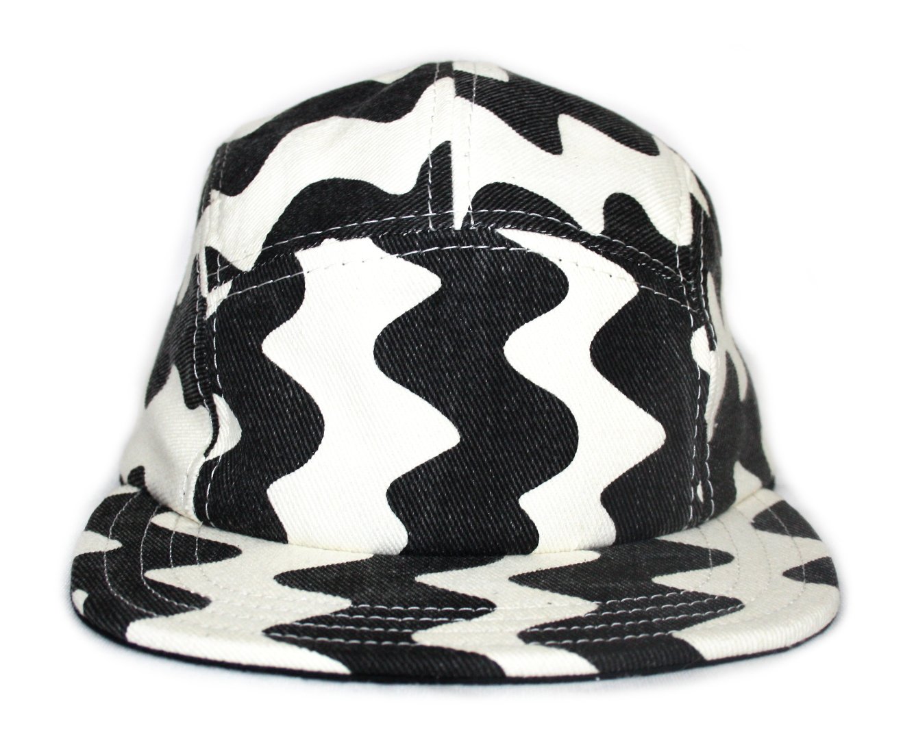 - Five panel cap made from printed denim.